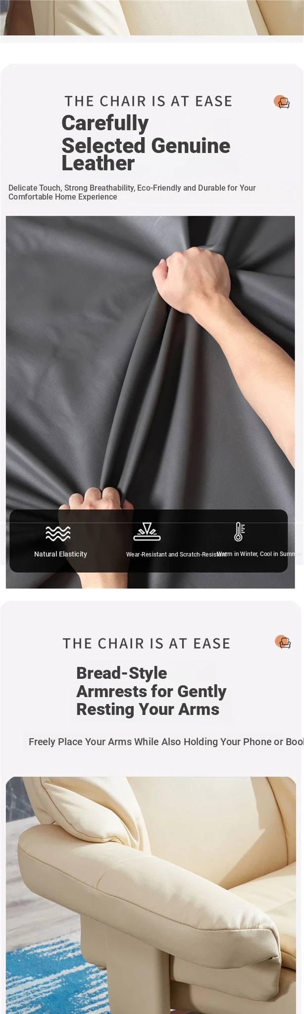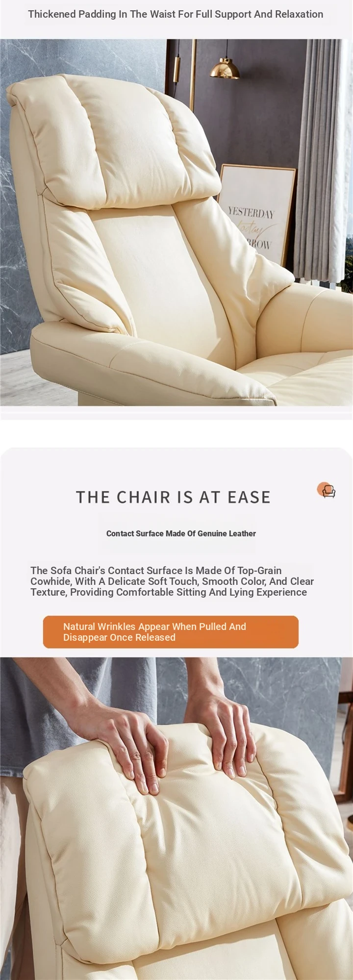 Premium Multifunctional Genuine Leather Lounge Chair - Perfect for Home Office or Balcony, Comfortable Single Seat Sofa for Relaxation and Style.